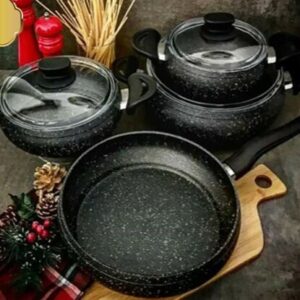 1 Adet Derin 20 cm Tencere ve kapağı, 1 Adet Derin 24 cm Tencere ve kapağı, 1 Adet 26 cm Tencere ve Kapağı, 1 Adet 26 cm Tavadan oluşmaktadır.